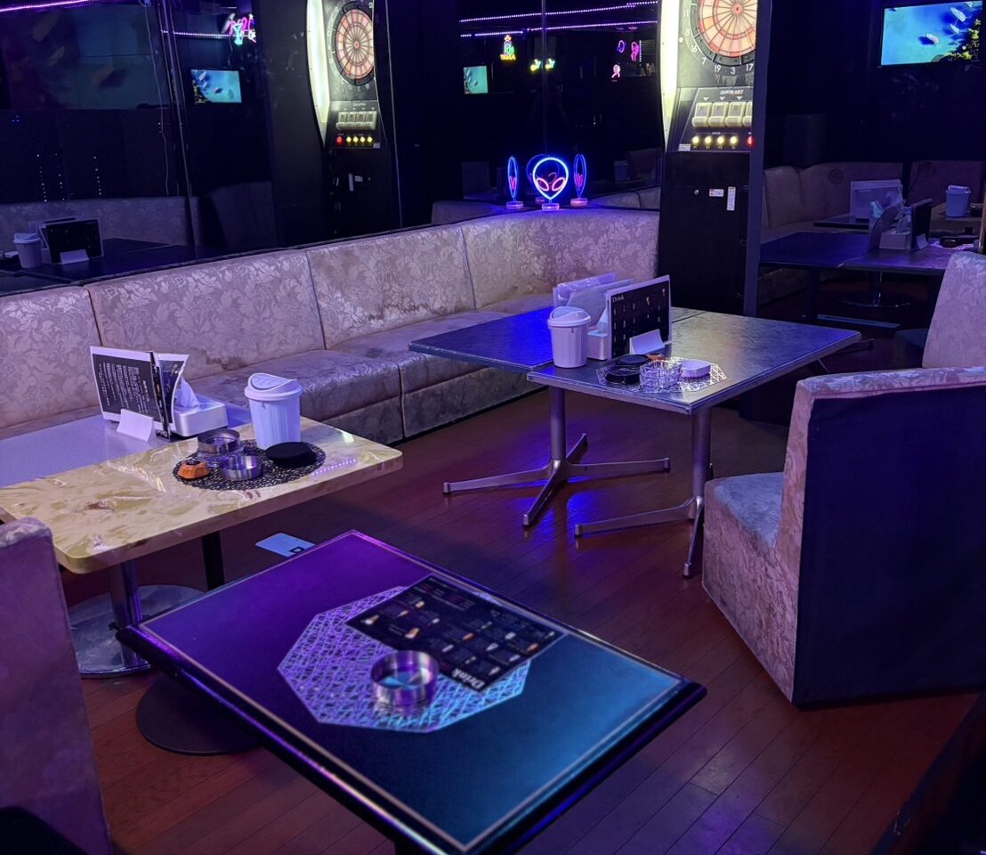 カウンターやBOX席、ステージまで光に包まれ、非日常的でワクワクする雰囲気が広がっています。