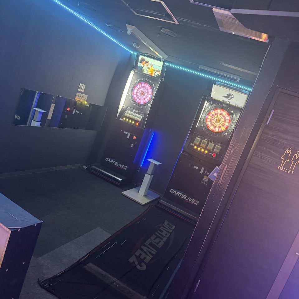 ダーツはDARTSLIVE2を3台設置し、そのうち1台はオンライン対戦対応。全国のプレイヤーとリアルタイムで競える本格仕様です。