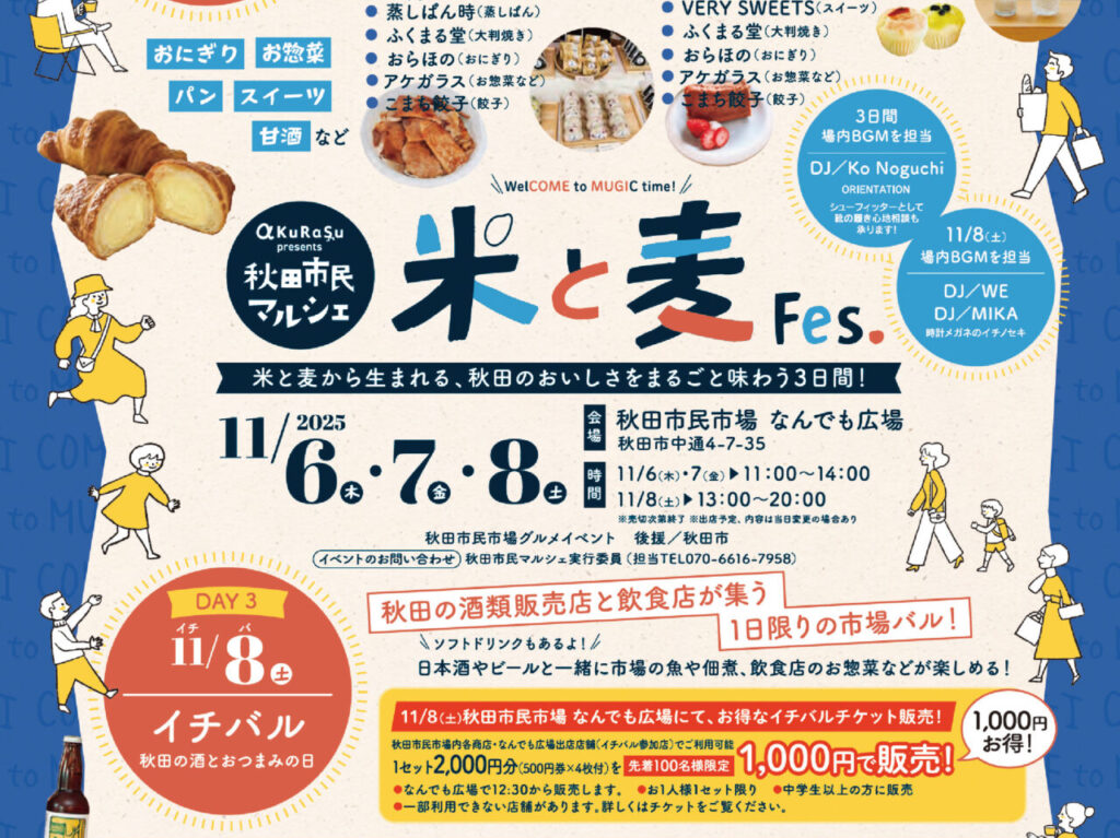 イイコトマーケット」が、2025年11月2日に、秋田拠点センターアルヴェ1階のきらめき広場で開催されるそうです!