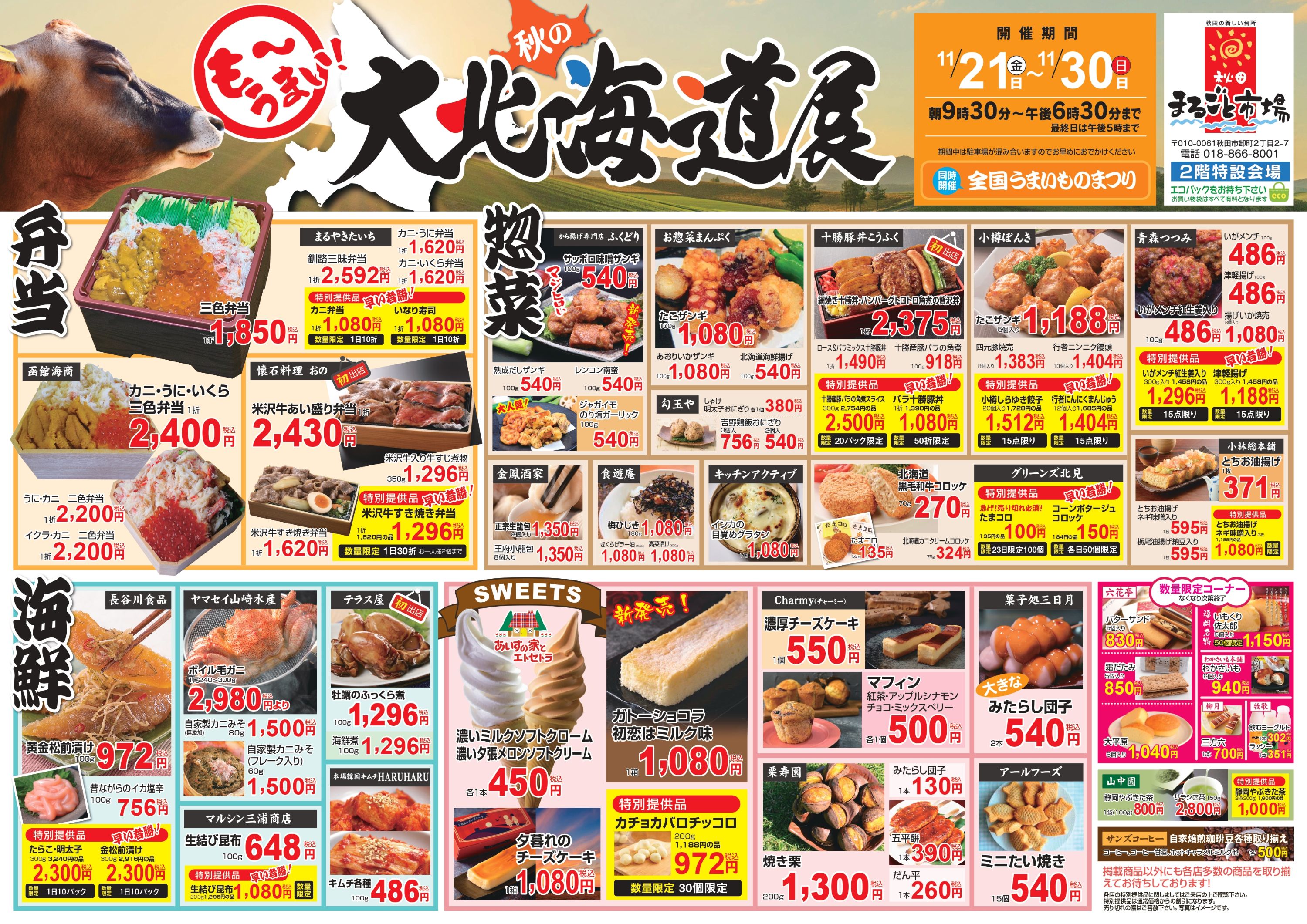 【秋田市】恒例の「秋の大北海道展」&「全国うまいものまつり」がまるごと市場で開催!11/21〜30まで!