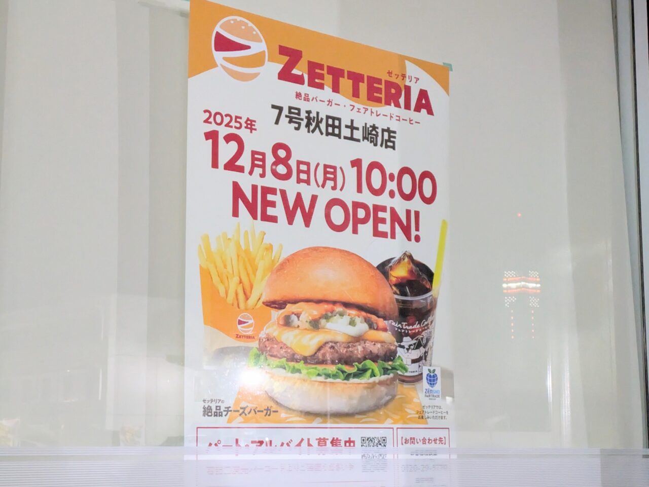 「ロッテリア7号秋田土崎店」は、2025年12月8日に「ゼッテリア7号秋田土崎店」として生まれ変わるそうです!