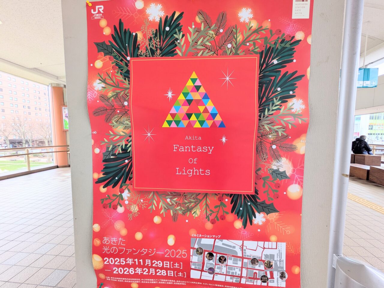イベント企画の一つ、秋田駅前の冬を彩るイルミネーション企画「あきた光のファンタジー2025」がすでに開催中です。