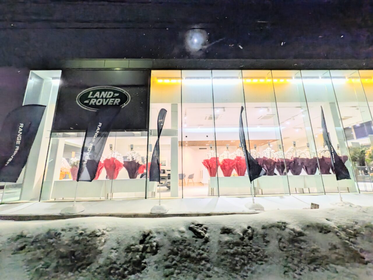 現地には看板がかかり、ランドローバーを代表するSUV車「レンジローバー」と書かれた旗がなびいていましたよ。
