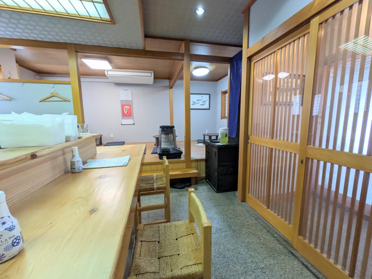 店内はカウンター席のほかに、丸テーブルが並ぶ小上がりスペースがあり、ゆったりと寛いで過ごせそうです。