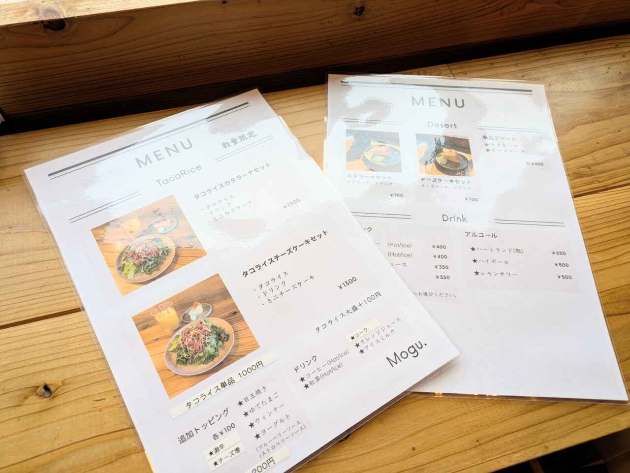 もう一つのメニューであるタコライスは、単品(1,000円)とデザートセット(1,300円)があり、単品のみテイクアウトも可能です。